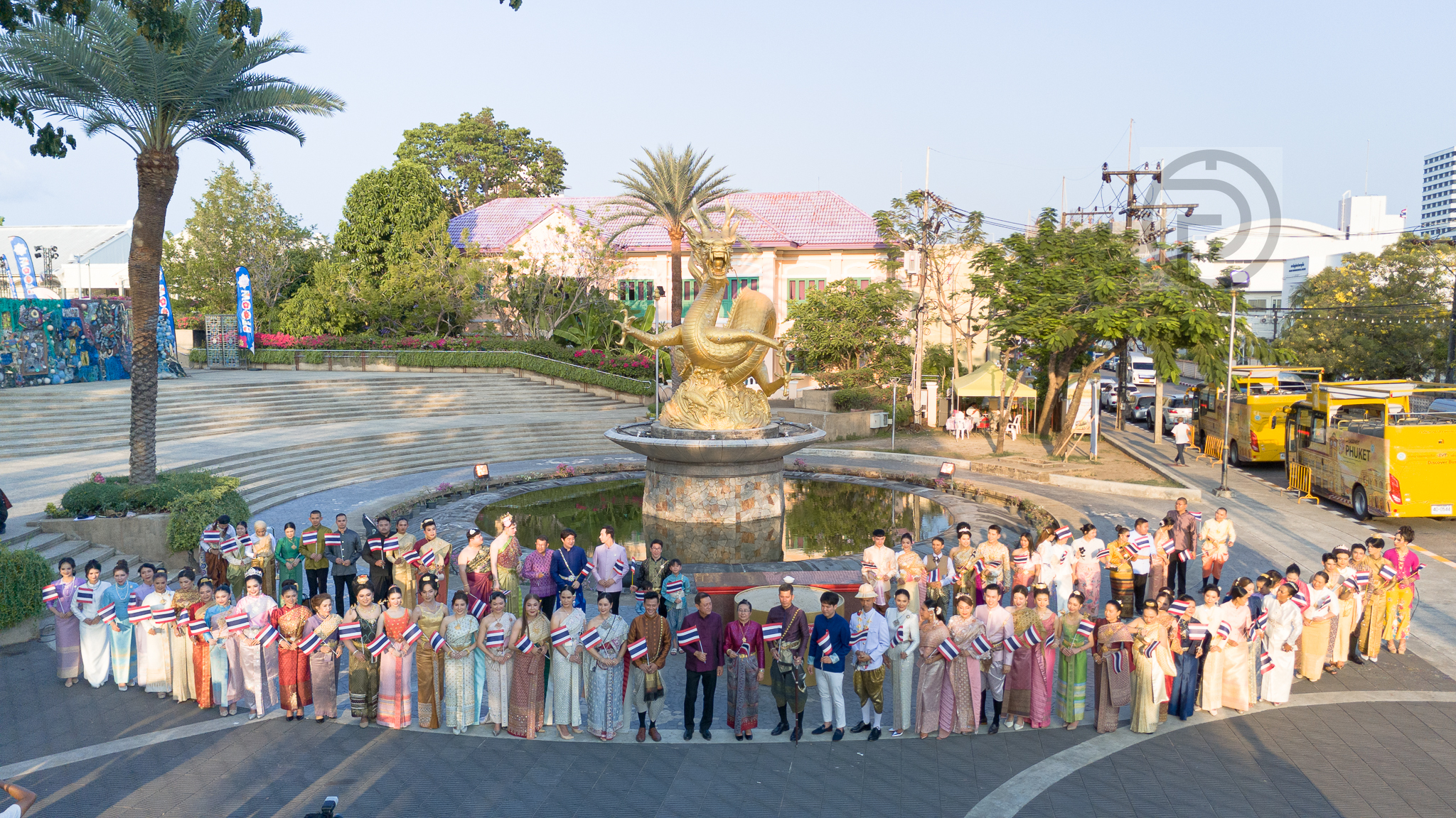 Das Kulturamt der Provinz Phuket leitete die Aktion und brachte Regierungsbehörden, private Organisationen und Anwohner zusammen. Die Teilnehmer trugen traditionelle und modernisierte thailändische Kleidung und versammelten sich an wichtigen Sehenswürdigkeiten, darunter die historische Kreuzung der Chartered Bank in der Altstadt und der berühmte Drachenplatz. Diese Orte dienten als kulturelle „Check-in-Punkte“, an denen Fotos aufgenommen wurden, um die Einheit beim Erhalt der thailändischen Identität zu symbolisieren.